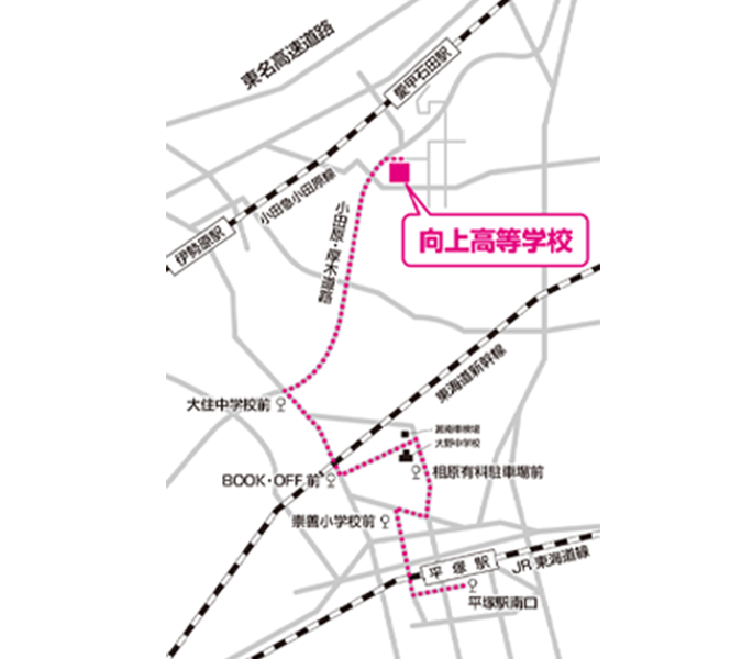 または南口路線バス(東成瀬循環)にて4分、「向上学園入口」