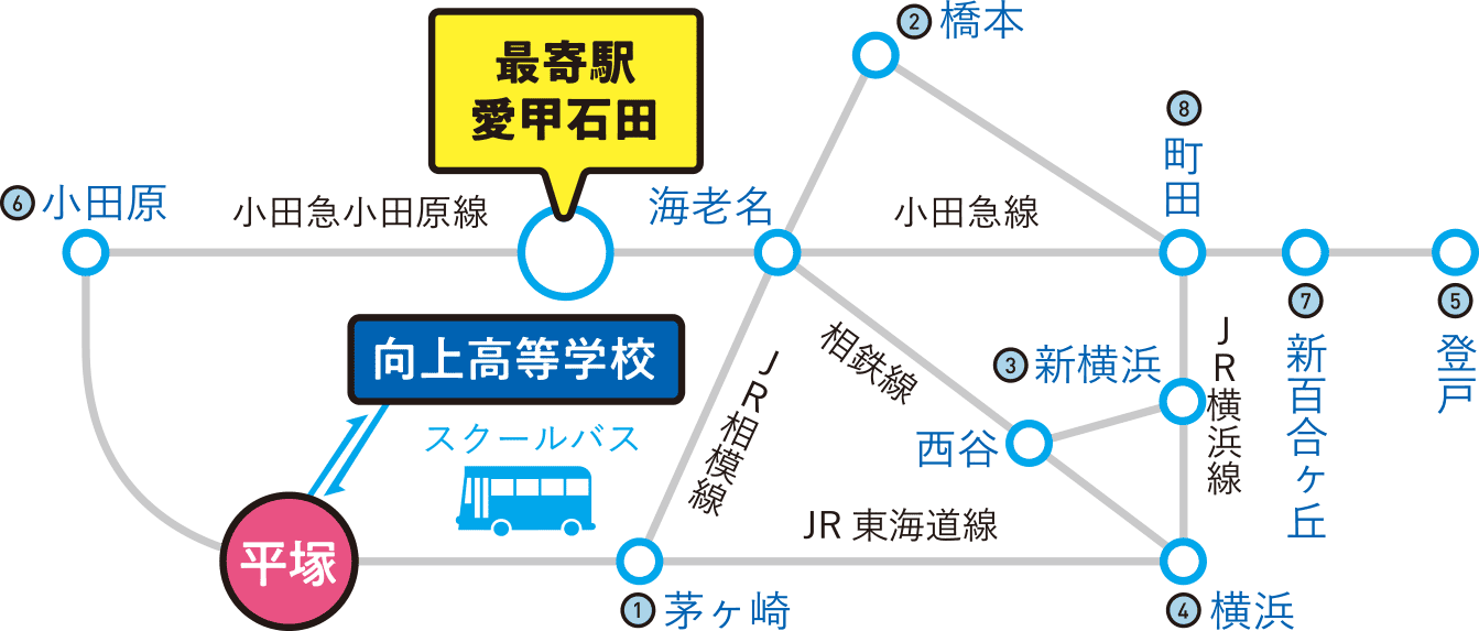 - アクロスプラザ等の近隣施設への無断駐車や学校周辺の路上駐停車により、近隣の方にご迷惑をおかけしている例がございます。安全の面からもご理解いただきまして、本校に来校される際は公共交通機関をご利用いただけますようお願いいたします。