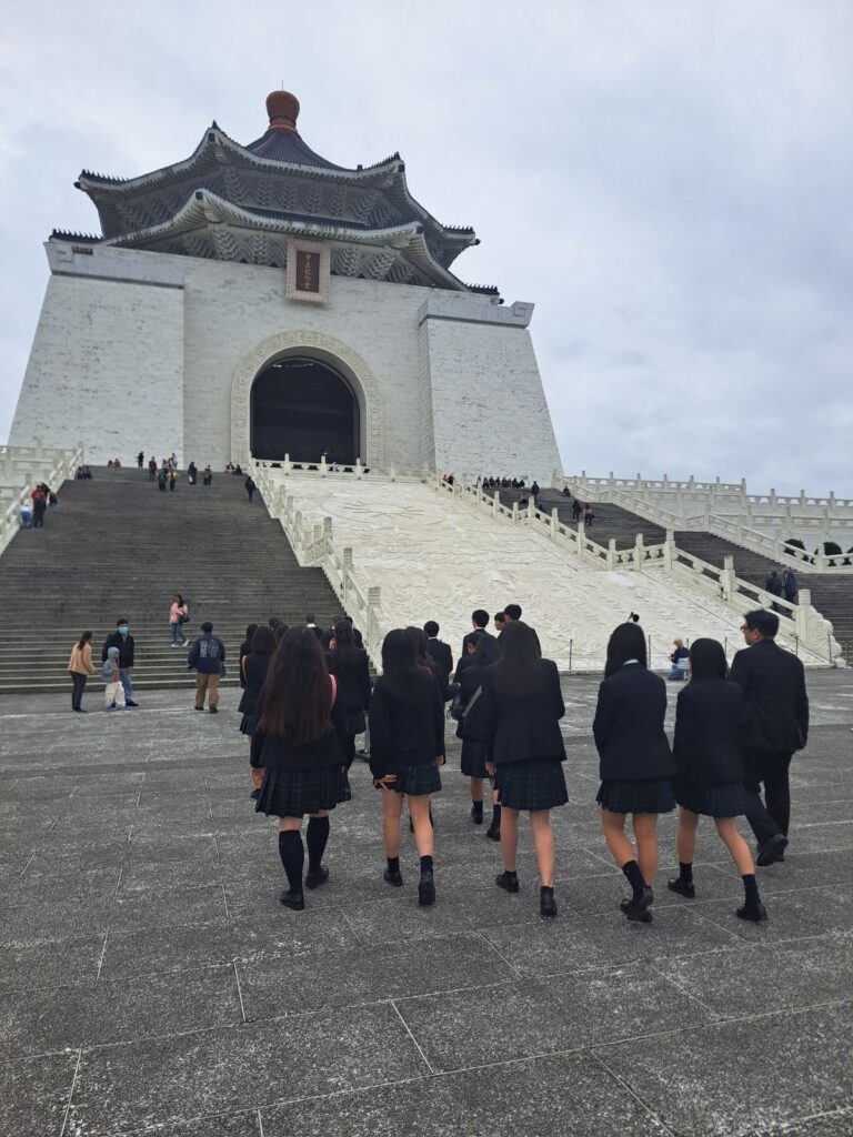 「中正紀念堂」では、広大な敷地と壮大な建築に、台湾の歴史や文化の重みを感じながら見学していました。衛兵交代式の様子も印象的で、現地ならではの雰囲気を体感することができました。