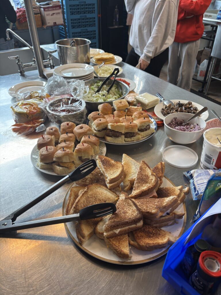 3時間目からは、ホストと共に調理実習をしました。メニューはハンバーガーなどです。普段料理をしない生徒も、見様見真似でがんばっていました。