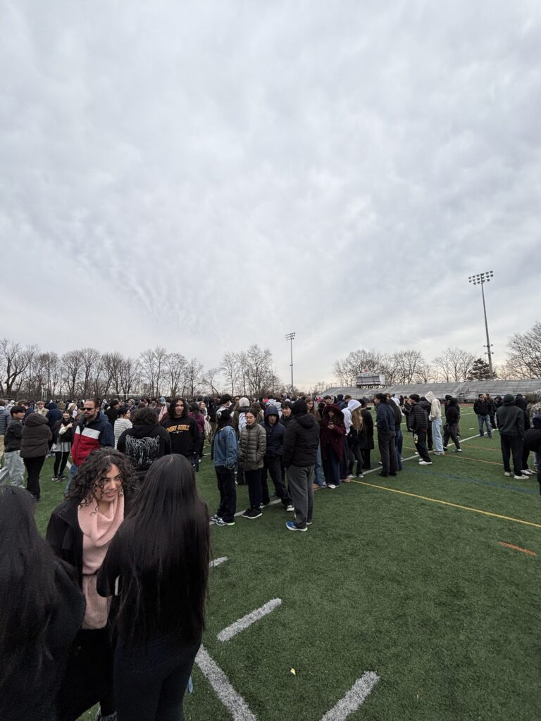 突然の警報と避難指示により、全員がグラウンドへ避難しました。ここ数日の中でも特に気温が低く非常に寒い日でしたが、無事に訓練を終えることができました。