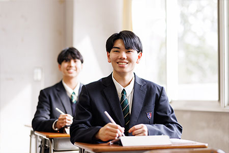 切磋琢磨できる仲間と学習面で励まし合い、行事などでは一致団結して取り組む中で、希望進路や夢に向かって課題や困難を楽しく乗り越えていける姿勢を培います。